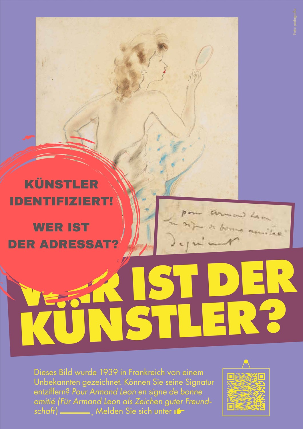Bei vielen weiteren Werken stößt jedoch auch die sorgfältigste Forschung an ihre Grenzen. Und genau hier bitten wir um Ihre Unterstützung: Es sollen Signaturen entziffert, Künstlernamen identifiziert und abgebildete Orte oder Personen erkannt werden. Jeder Hinweis kann dazu beitragen, die rechtmäßigen Eigentümerinnen oder Eigentümer dieser Kunstwerke wiederzufinden.